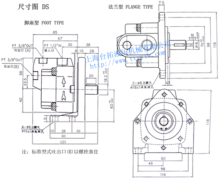 使用說明:1、一般定量葉片泵DS以開放式油路為準(zhǔn)。
