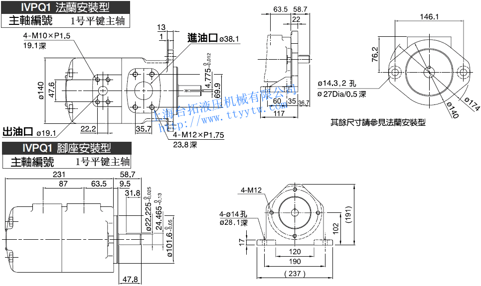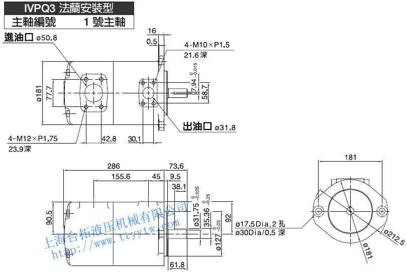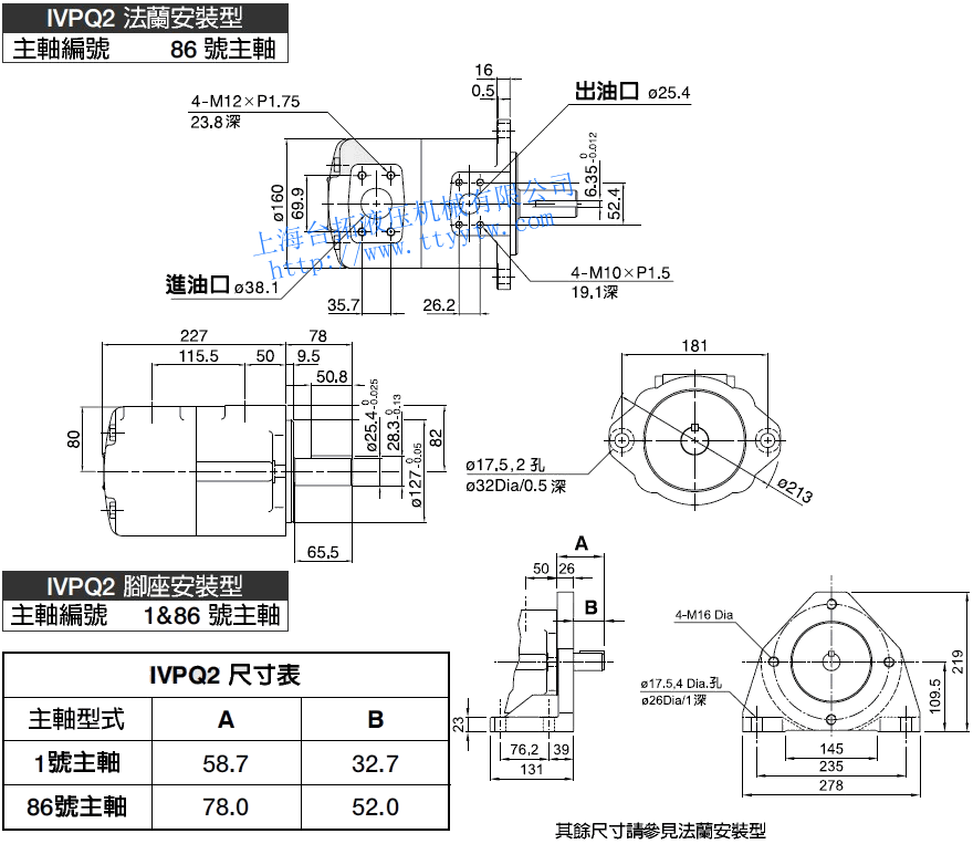 子母葉片定量泵IVPQ4(86號平鍵主軸/1&86號主軸)尺寸圖下載