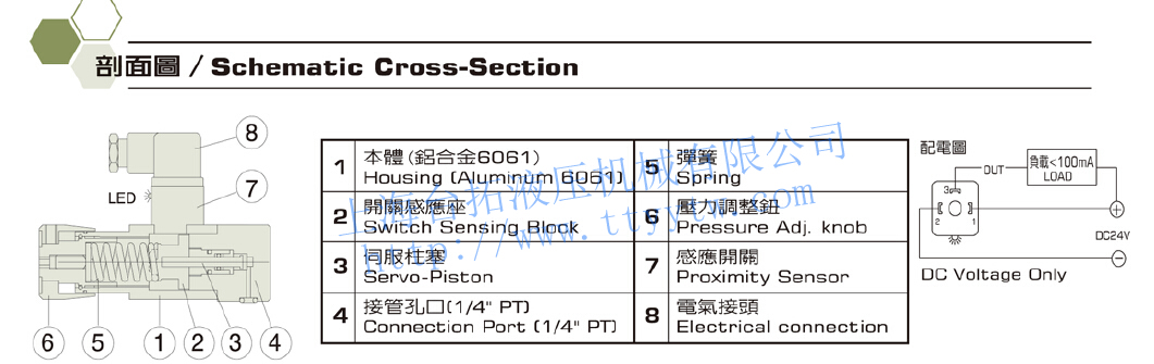 1、壓力繼電器PSL貼壁壓力直讀式,VDC電晶體感應(yīng)開關(guān),貼壁型安裝,為新型無接點式油電壓力開關(guān),連接牙口為RC1/4",高負載:24VDC<100mA,特殊無接點感應(yīng)開關(guān)輸出可與PRC或電腦程式讀出輸出時LED批示燈識別。