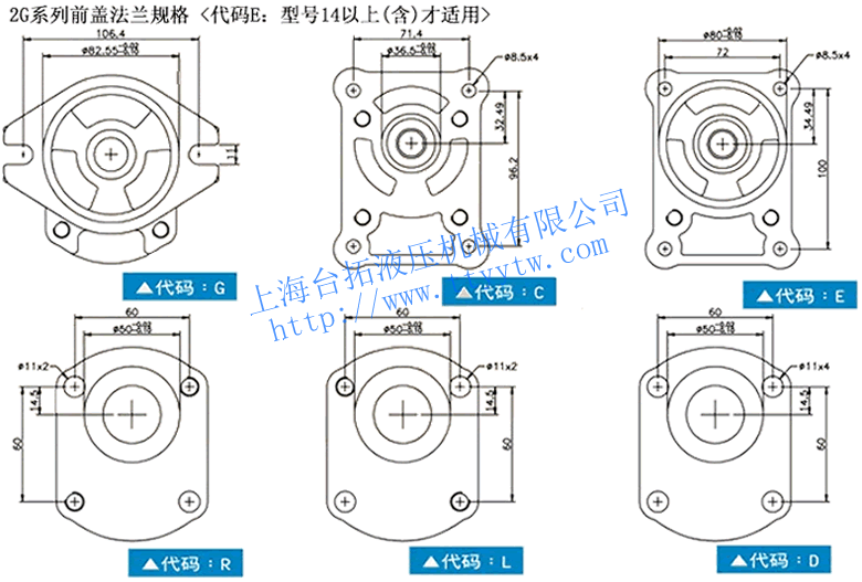 2 G G 1 P 16 R 系列 型式/功能 前蓋法蘭規(guī)格 軸伸規(guī)格 出入油口規(guī)格 型號(hào) 旋向 備注:1、R表示右轉(zhuǎn),面向軸伸順時(shí)針;L表示左轉(zhuǎn),面向軸伸逆時(shí)針。2、假設(shè)您所要的前泵排量是16.0ml/rev,旋向是右旋,正確的訂購型號(hào):2GG1P16R。