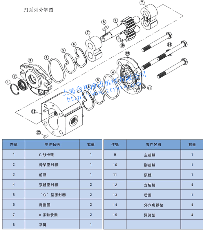定量齒輪泵P1系列分解圖