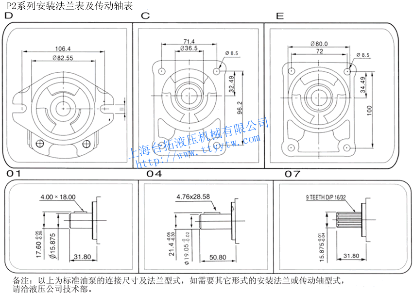 定量齒輪泵P2系列系列安裝法蘭表及轉(zhuǎn)動軸表