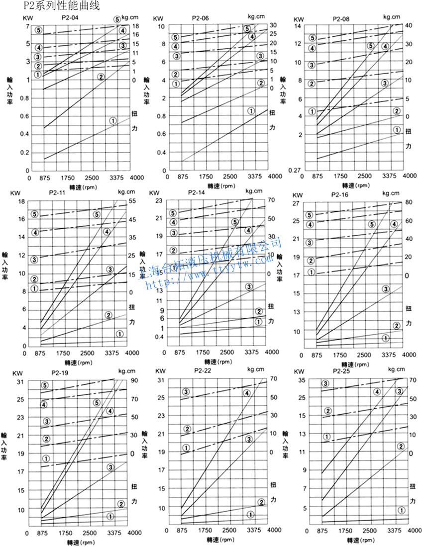 定量齒輪泵P2系列性能曲線(輸入功率-轉(zhuǎn)速-扭力特性)