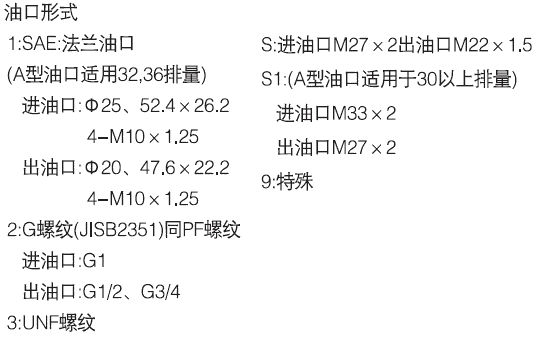 (毫升/轉(zhuǎn))油口位置 油口形式 安裝方式 軸伸形式 旋轉(zhuǎn)方向