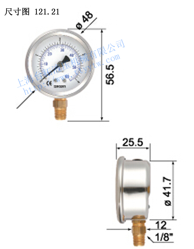 臺灣協(xié)鋼SKON充油式壓力表121.21尺寸圖