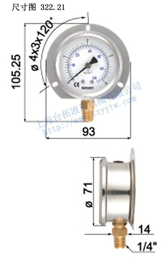 臺灣協(xié)鋼SKON充油式壓力表322.21尺寸圖