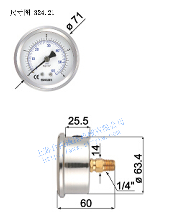 臺灣協(xié)鋼SKON充油式壓力表324.21尺寸圖