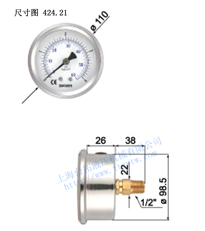 臺灣協(xié)鋼SKON充油式壓力表424.21尺寸圖