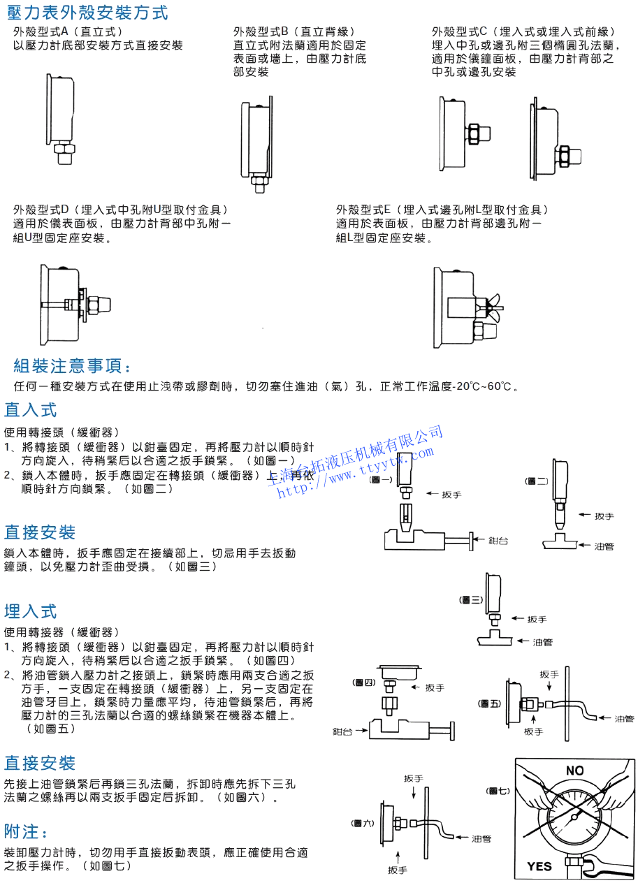 耐震壓力表AT,DT安裝方法