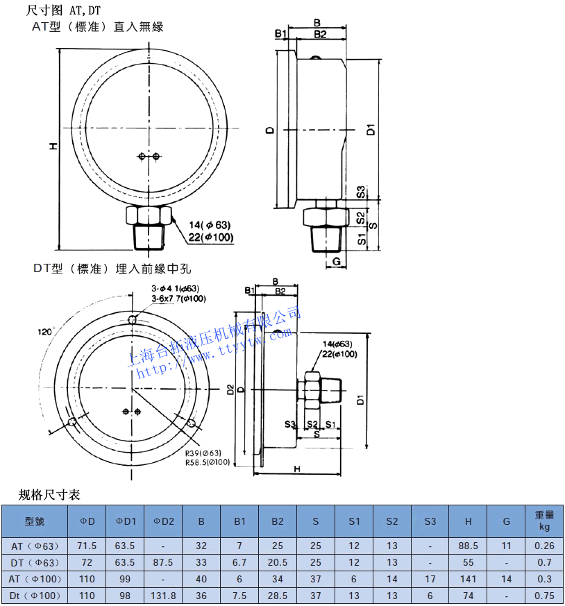 耐震壓力表AT,DT尺寸圖