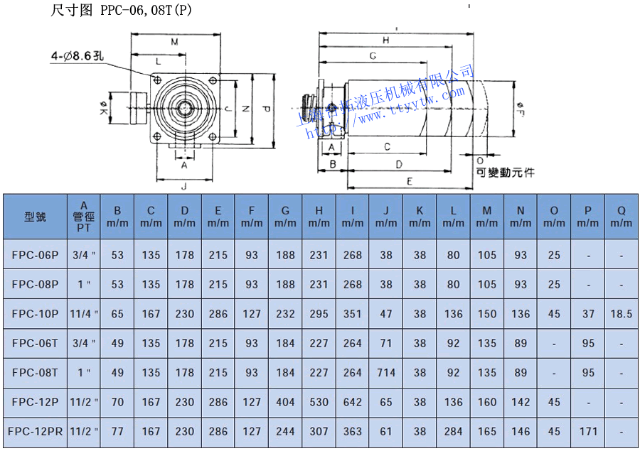 型號(hào) 規(guī)格(PT) 最大流量 ?/min 重量 Kg 固定方式 FPC-06P 3/4" 67 2.0 P:管路式