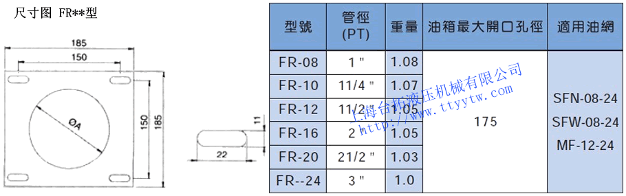 濾油網(wǎng)清潔蓋FS,FR系列規(guī)格表