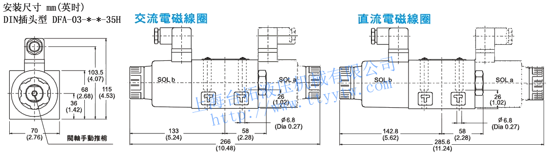 電磁換向閥DFB-03-*-*-35H安裝尺寸下載 電磁換向閥DFA-03-*-*-35H安裝尺寸下載