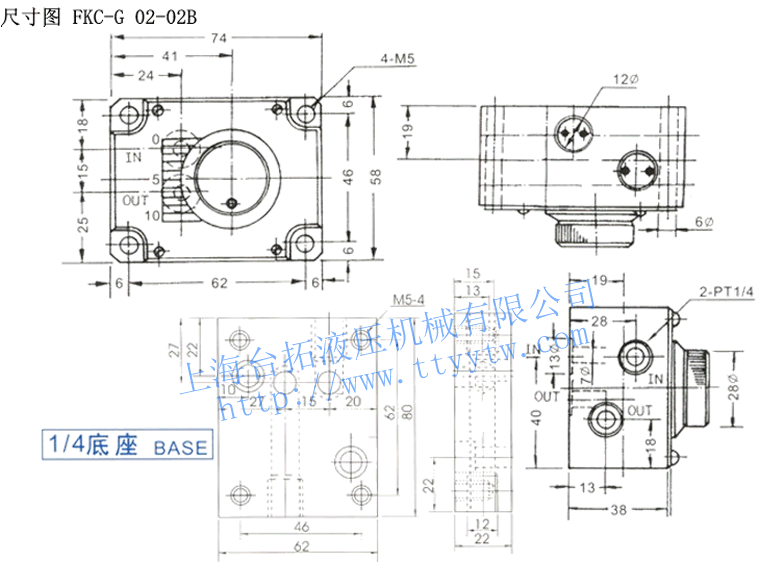 型 號(hào) 流量調(diào)整范圍?/min 最高使用壓力kg/cm2 自由流量?/min 接線(xiàn)口徑 FKC-G 02001-02B 0.1~1 70 20 PT 1/4 FKC-G 02002-02B 0.1~2 FKC-G 02004-02B 0.1~4 調(diào)速閥FKC-G 02-02B尺寸圖