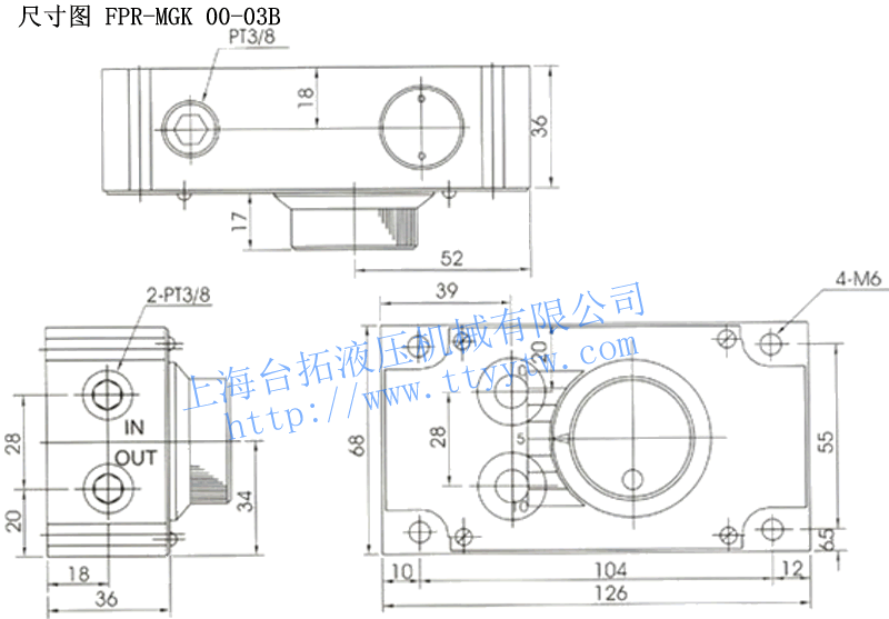 型 號(hào) 流量調(diào)整范圍?/min 最高使用壓力kg/cm2 自由流量?/min 接線口徑 FPR-MGK 002-03B 0.1~2 70 30 PT 3/8 FPR-MGK 004-03B 0.1~4 FPR-MGK 008-03B 0.1~8 調(diào)速閥FPR-MGK 00-03B尺寸圖