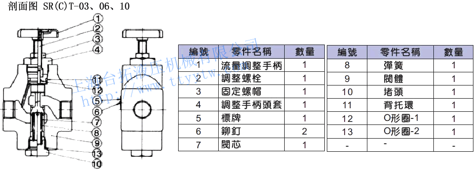 10:1-1/4"節(jié)流閥,單向節(jié)流閥SR系列規(guī)格表