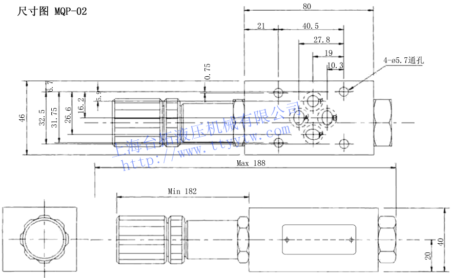 MQ P -02 -B -P 系列號碼 控制油路 規(guī)格 壓力調(diào)整范圍 控制方式 疊加式順序閥 P:P油路 02:1/4"