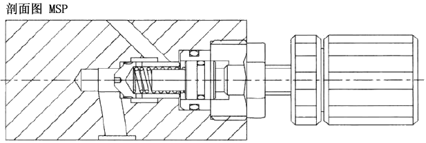 型號 最高使用壓力 Mpa 最大流量 ?/min 重量 Kg MSP-02 25 30 1.0 MSP-03 50 2.7 疊加式止逆節(jié)流閥MSP剖面圖
