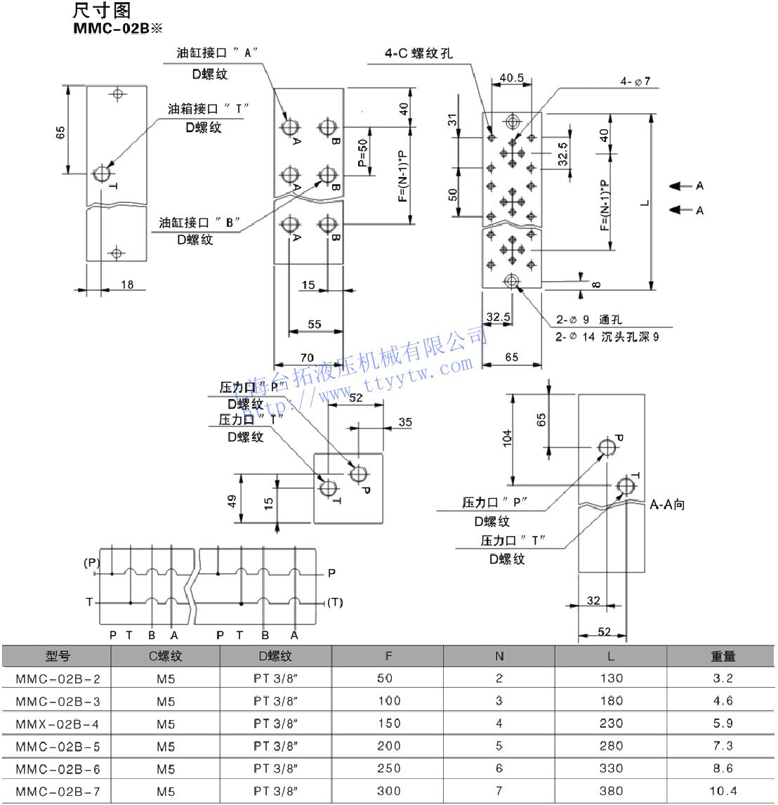 MMC -02 B -3 系列號碼 規(guī)格 進出油口位置 通數(shù) 標準型油路塊 02:1/4"