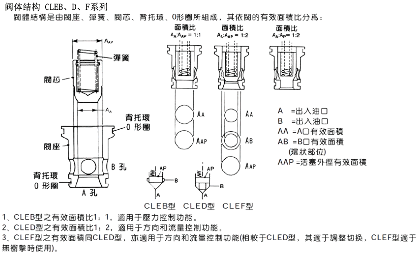 直入式插裝閥CLEB,D,F系列插裝閥功能是液控單向閥,控制方向可分單引道、多重引道、流量控制、電磁控制,有引導(dǎo)方向控制等。
