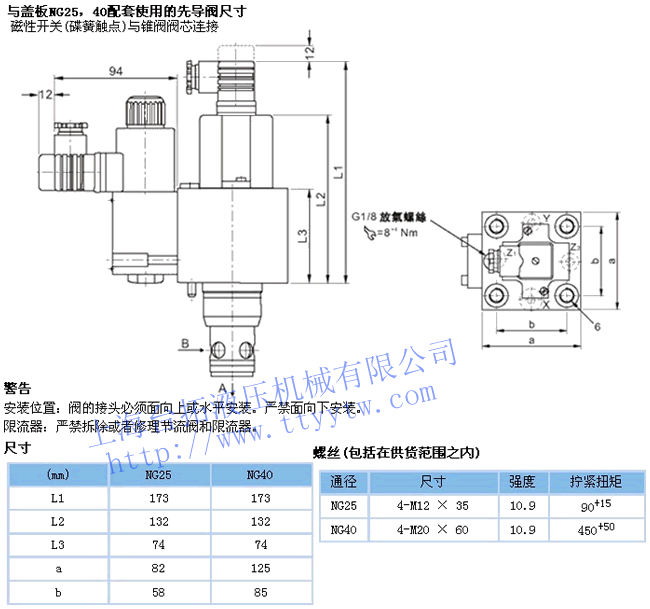 二通插裝式安全閥與蓋板NG2540配套使用的先導閥尺寸