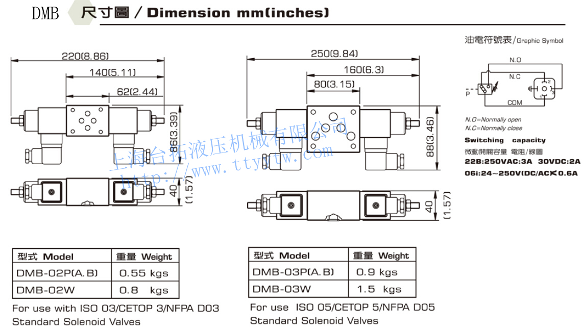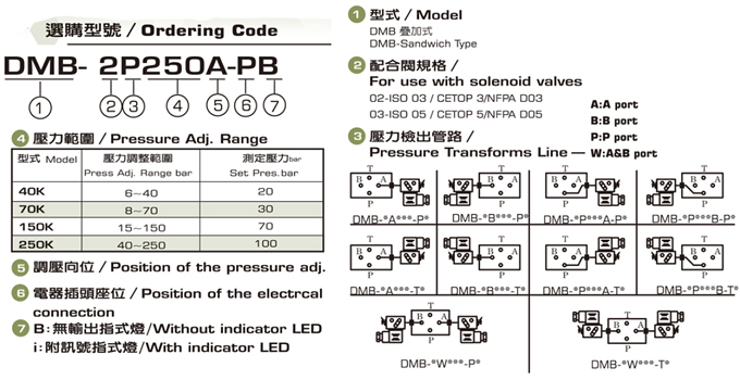 油電壓力開關(guān)DMB規(guī)格表: