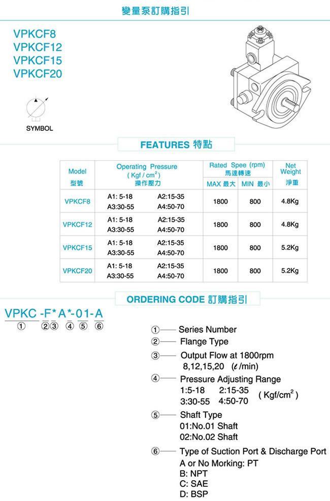 變量泵VPKCF8/12/15/20型號(hào)規(guī)格表