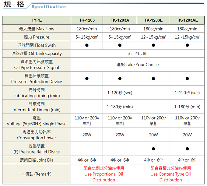 電動潤滑給油機(jī)TK-1203規(guī)格表