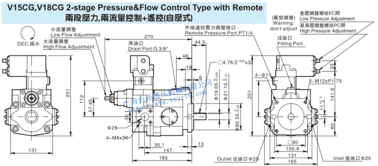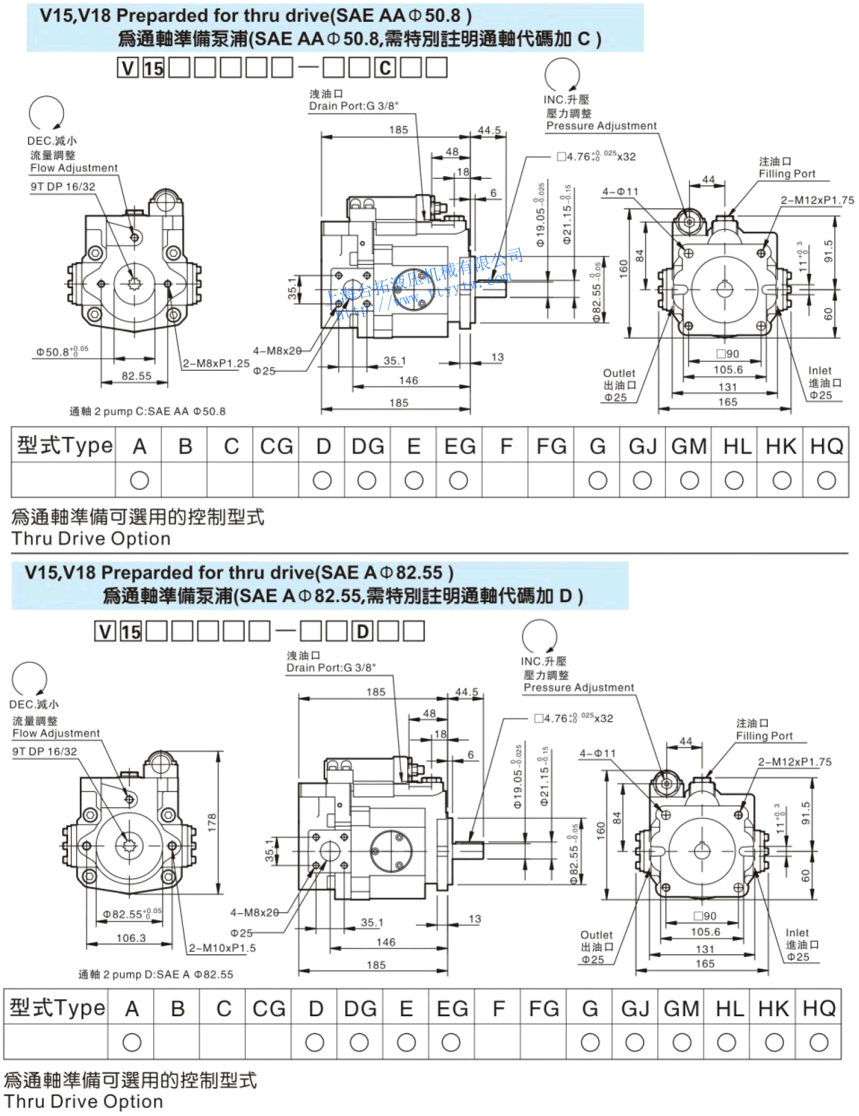 變量柱塞泵V15C,V18C尺寸圖下載 變量柱塞泵V15CG,V18CG尺寸圖下載