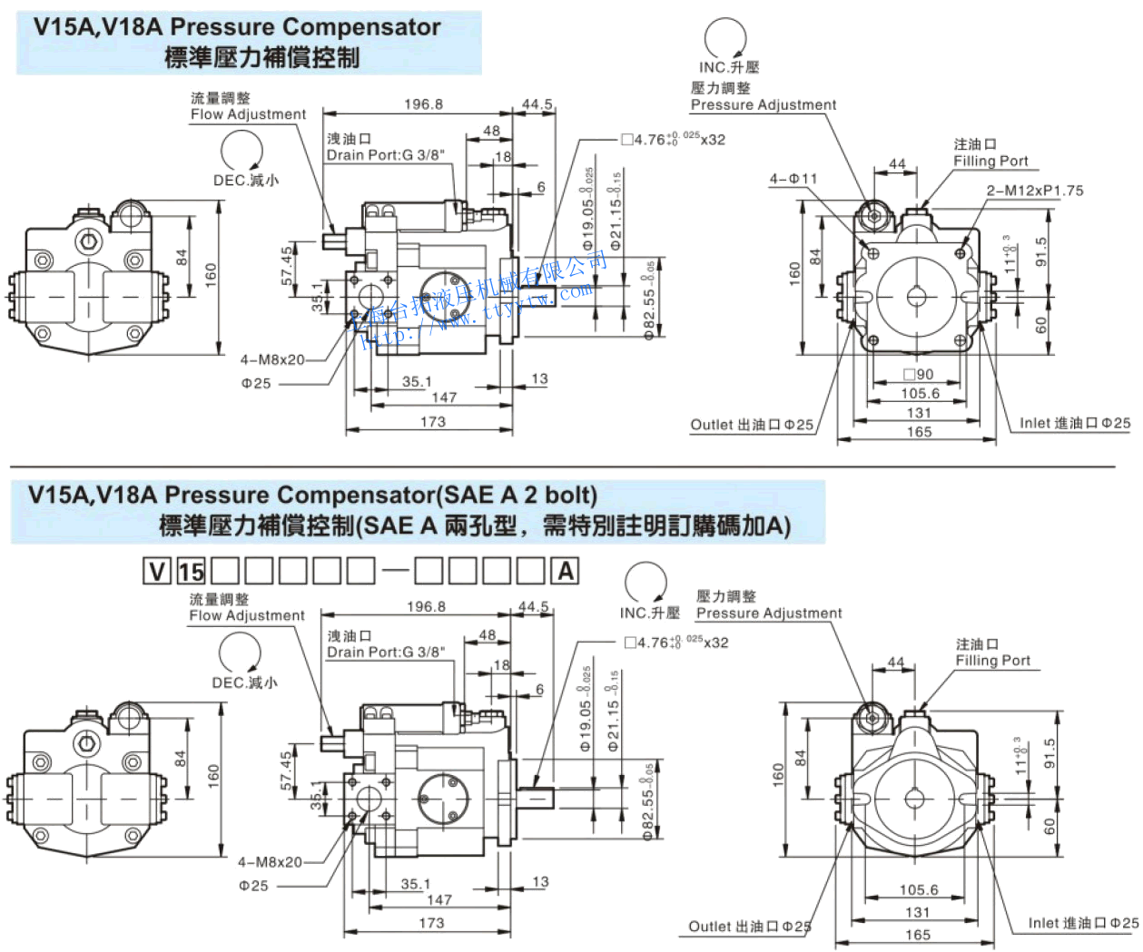 變量柱塞泵V15A,V18A尺寸圖下載 變量柱塞泵V15B,V18B尺寸圖下載