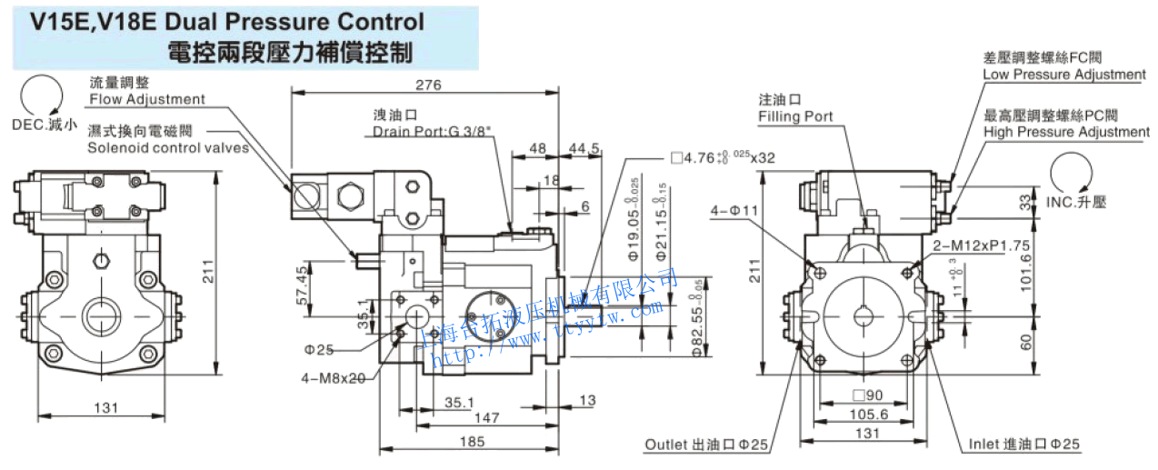 變量柱塞泵V15E,V18E尺寸圖下載 變量柱塞泵V15EG,V18EG尺寸圖下載