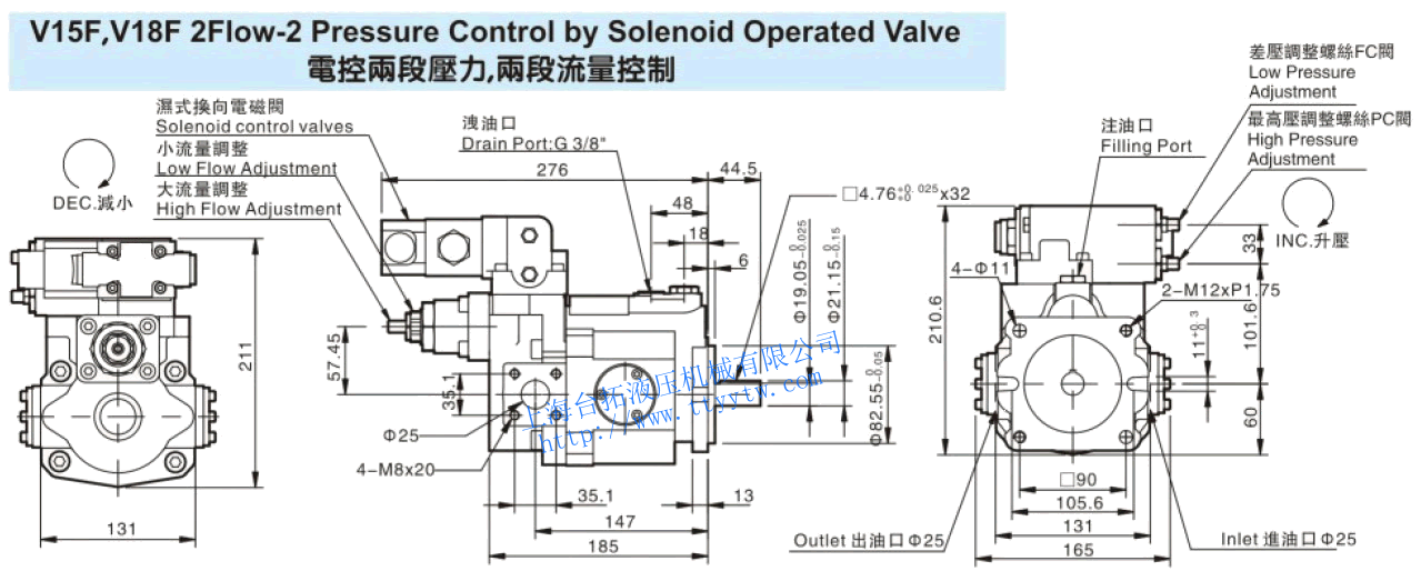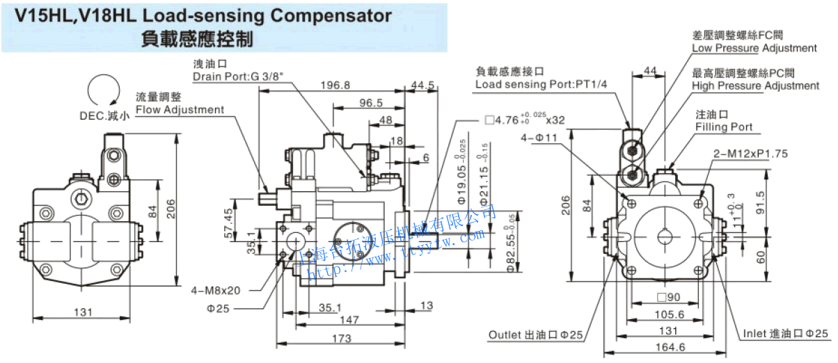 變量柱塞泵V15HK,V18HK尺寸圖下載 變量柱塞泵V15HQ,V18HQ尺寸圖下載