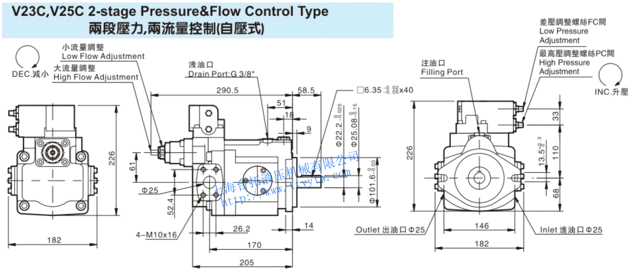 變量柱塞泵V23C,V25C尺寸圖下載 變量柱塞泵V23CG,V25CG尺寸圖下載