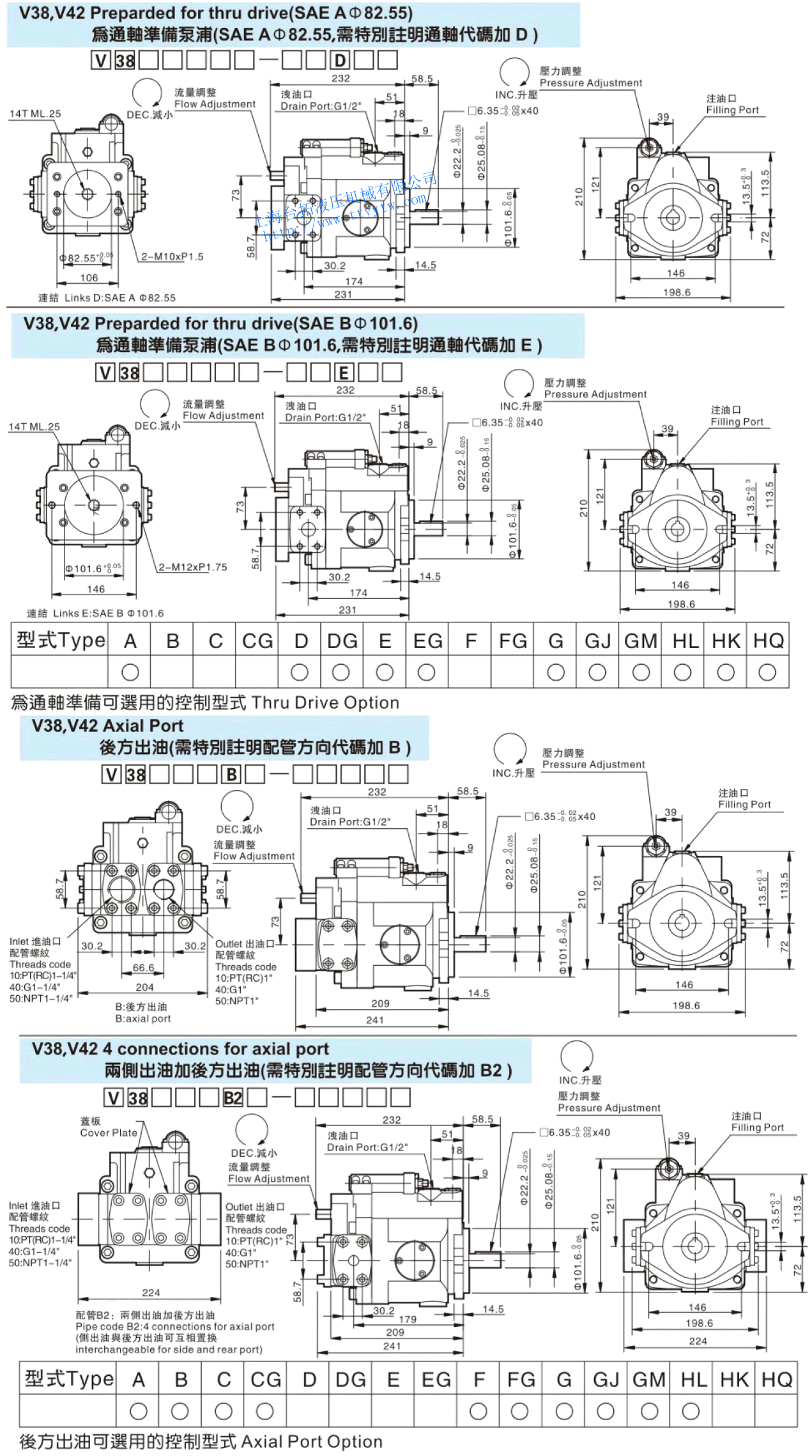 變量柱塞泵V38C,V42C尺寸圖下載 變量柱塞泵V38CG,V42CG尺寸圖下載