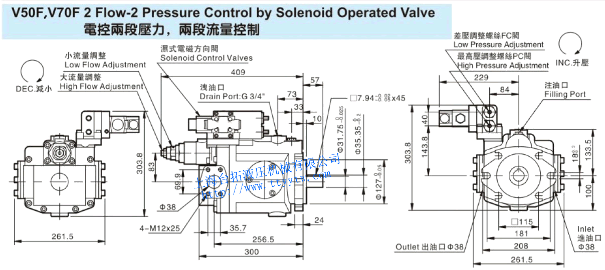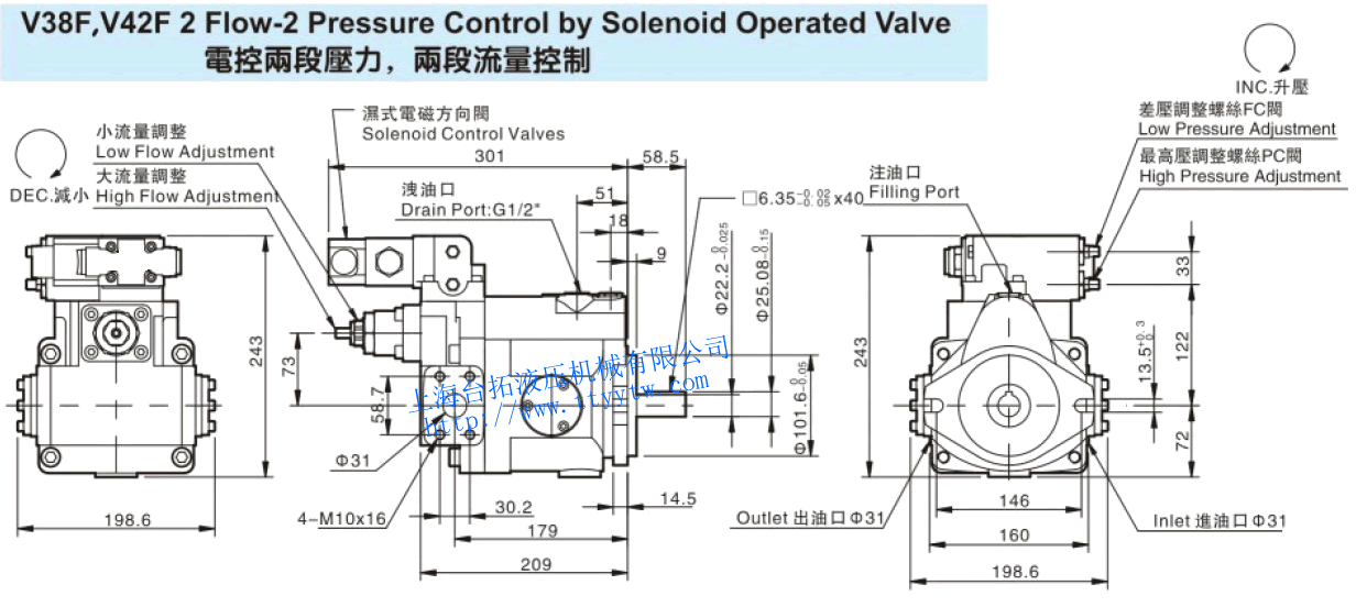 變量柱塞泵V38F,V42F尺寸圖下載 變量柱塞泵V38FG,V42FG尺寸圖下載