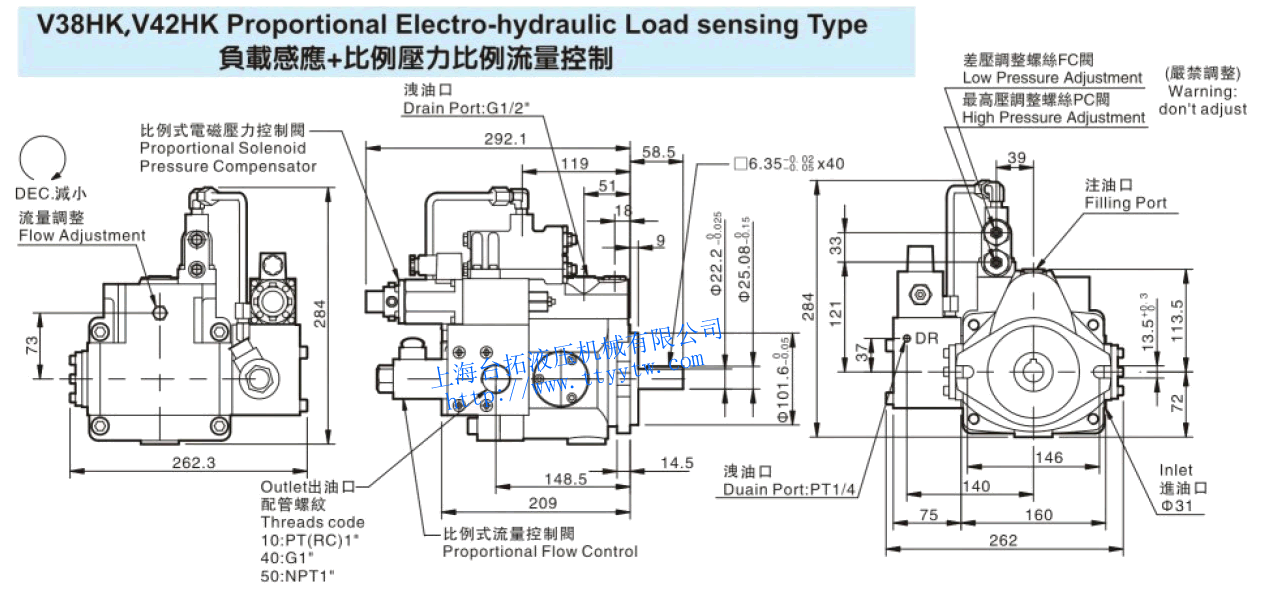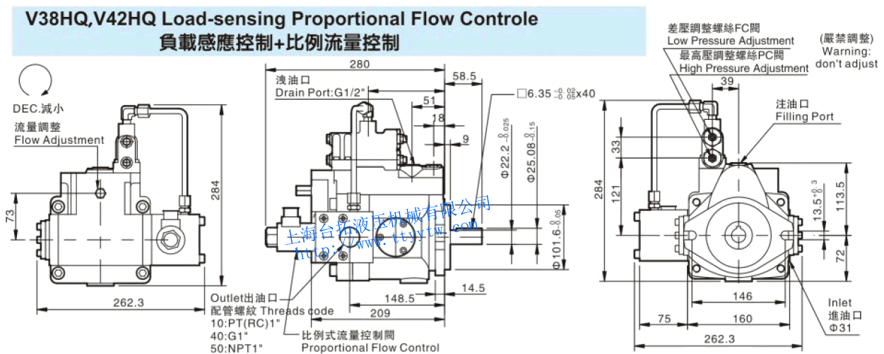 變量柱塞泵V38HK,V42HK尺寸圖下載 變量柱塞泵V38HQ,V42HQ尺寸圖下載