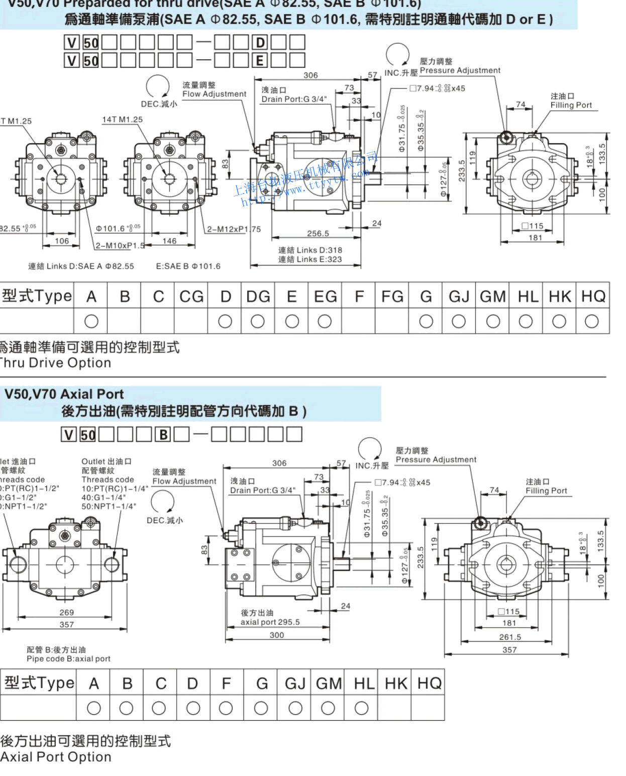 變量柱塞泵V50F,V70F尺寸圖下載 變量柱塞泵V50G,V70G尺寸圖下載