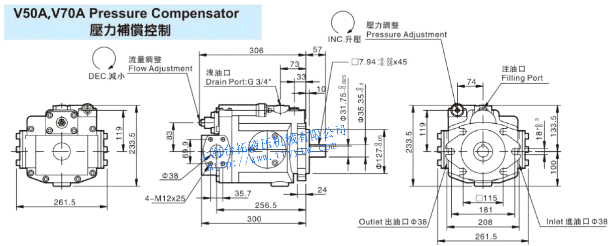 變量柱塞泵V50A,V70A尺寸圖下載 變量柱塞泵V50B,V70B尺寸圖下載