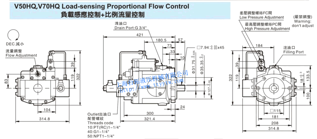 變量柱塞泵V50HQ,V70HQ尺寸圖下載