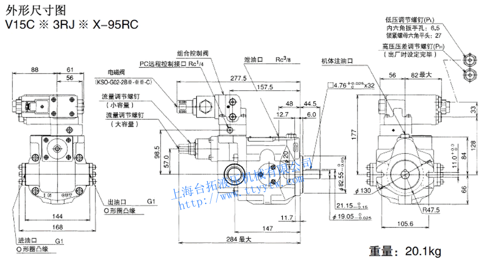 變量柱塞泵V15C*3RHX-95RC尺寸圖下載 變量柱塞泵V15C**RJ*X-95尺寸圖下載