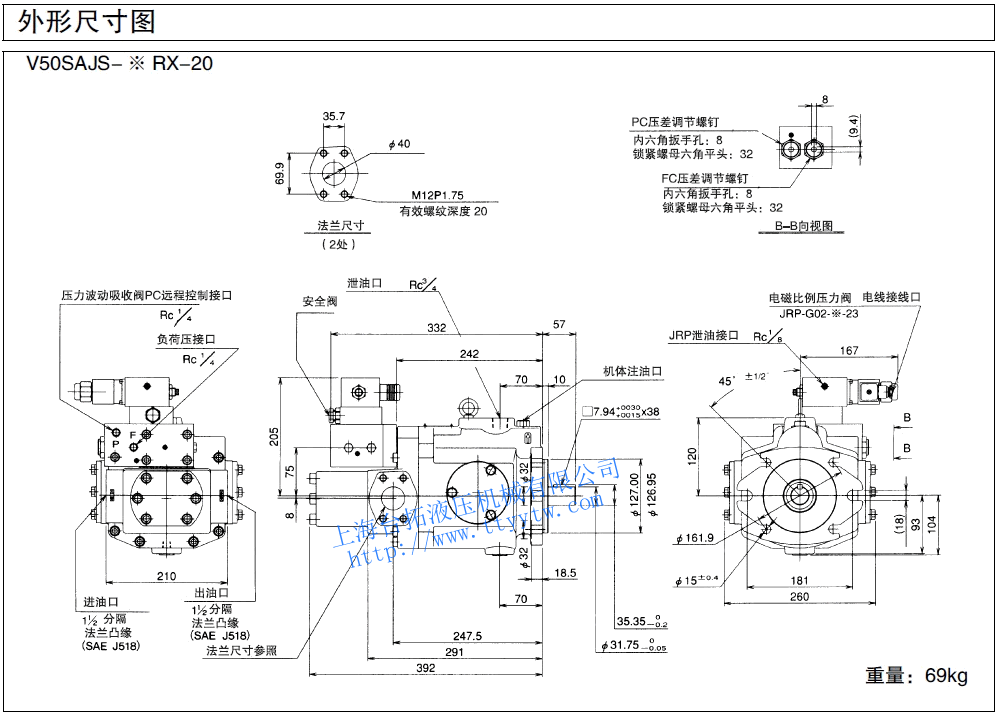 變量柱塞泵V50SAJS-*RX-20尺寸圖下載 變量柱塞泵V70A*RX-60尺寸圖下載