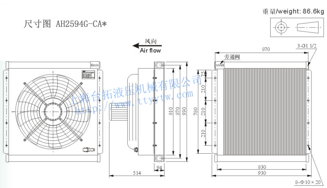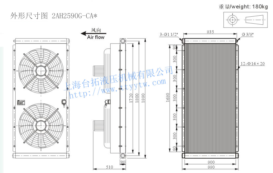 風冷機AH2594G-CA*外形尺寸圖下載 風冷機2AH2590G-CA*外形尺寸圖下載