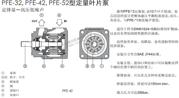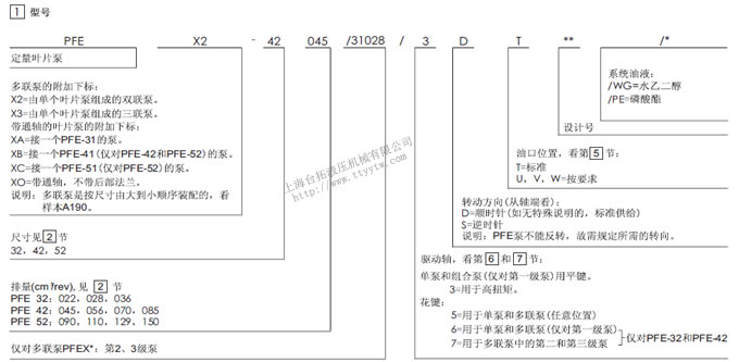 葉片泵PFE32/42/52工作特主要參數(shù)油口排列