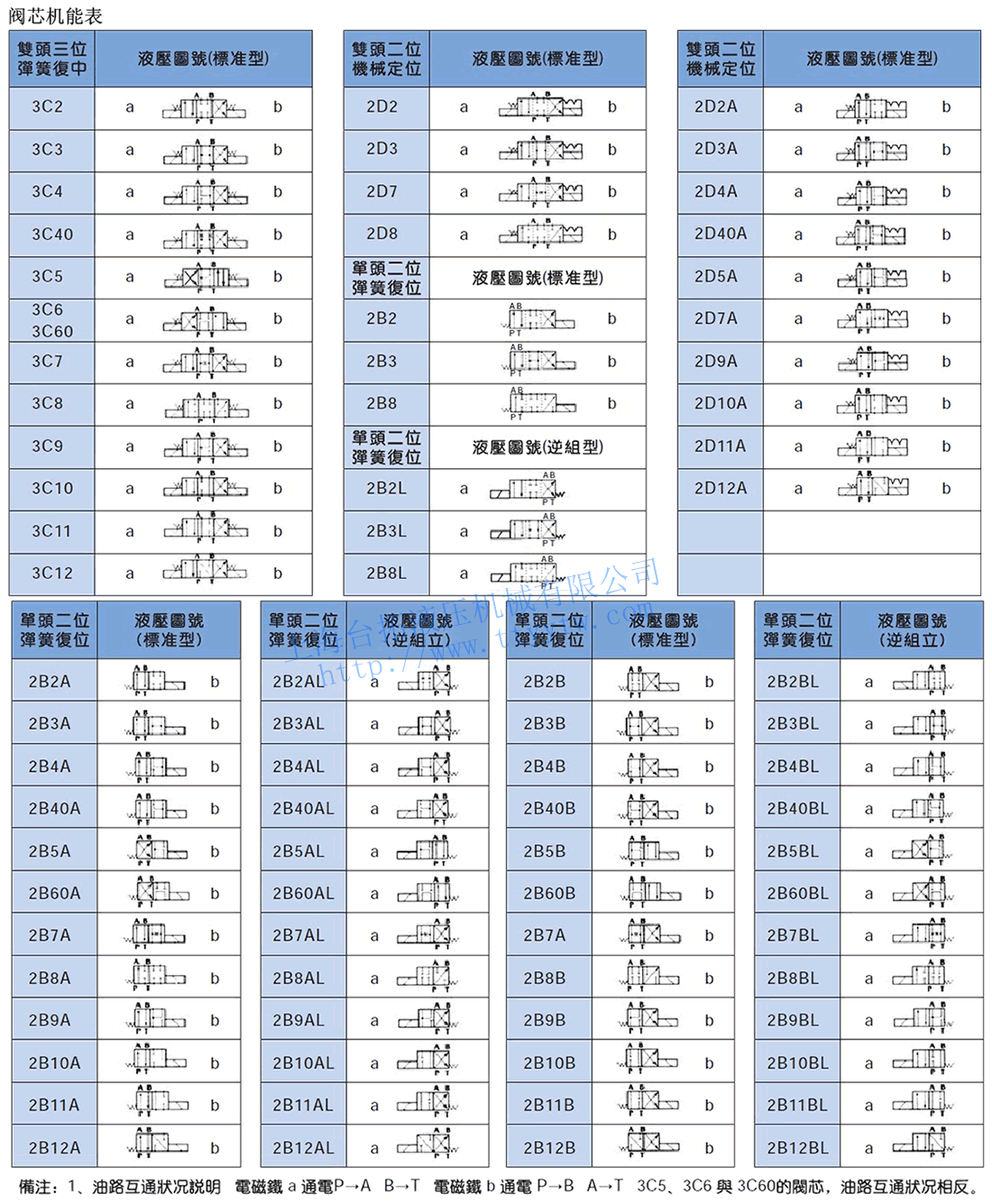 電磁換向閥D4,D5常用閥芯機(jī)能表
