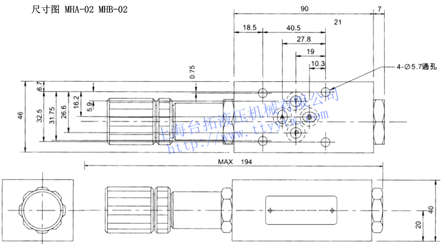 疊加式抗衡閥MHA,MHB尺寸圖