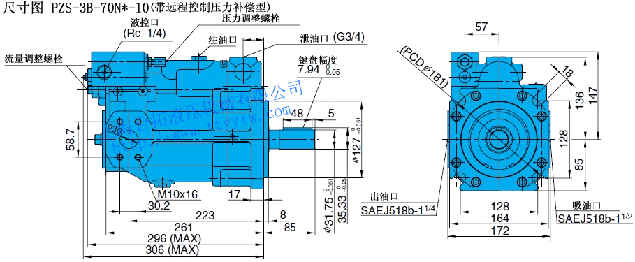 變量柱塞泵PZS-3B-70N*-10尺寸圖下載 變量柱塞泵PZS-4B-100N*-10尺寸圖下載