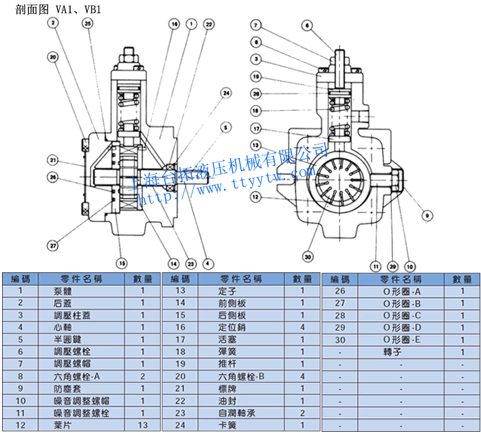 低壓變量葉片泵VA1、VB1剖面圖下載 低壓變量葉片泵VC1、VD1、VE1剖面圖下載