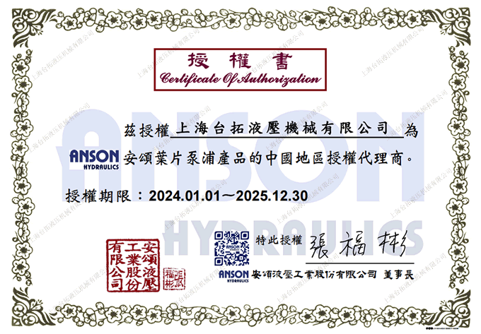 中國臺灣安頌ANSON授權(quán)代理證書