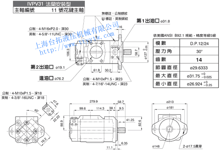雙聯(lián)子母葉片定量泵IVPV31(86號平鍵主軸/1&86號主軸)尺寸圖下載 雙聯(lián)子母葉片定量泵IVPV31(11號花鍵主軸)尺寸圖下載