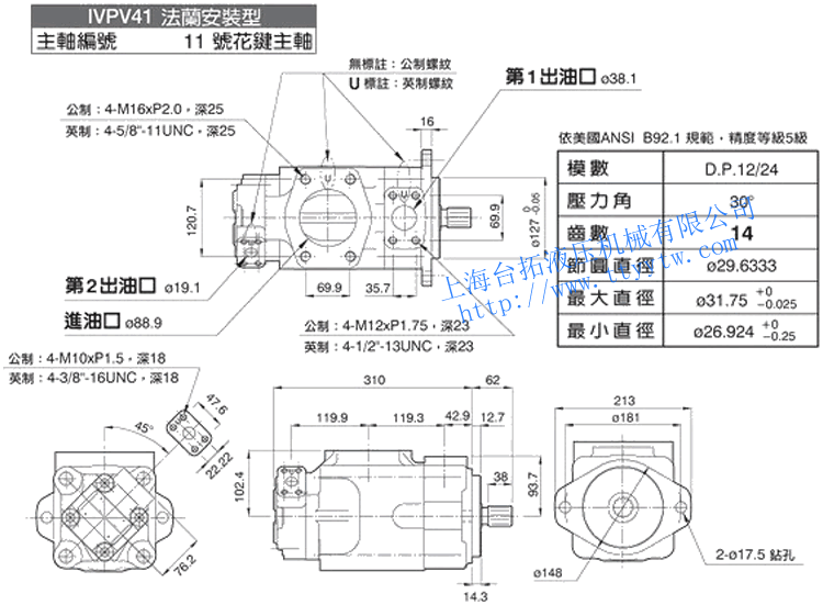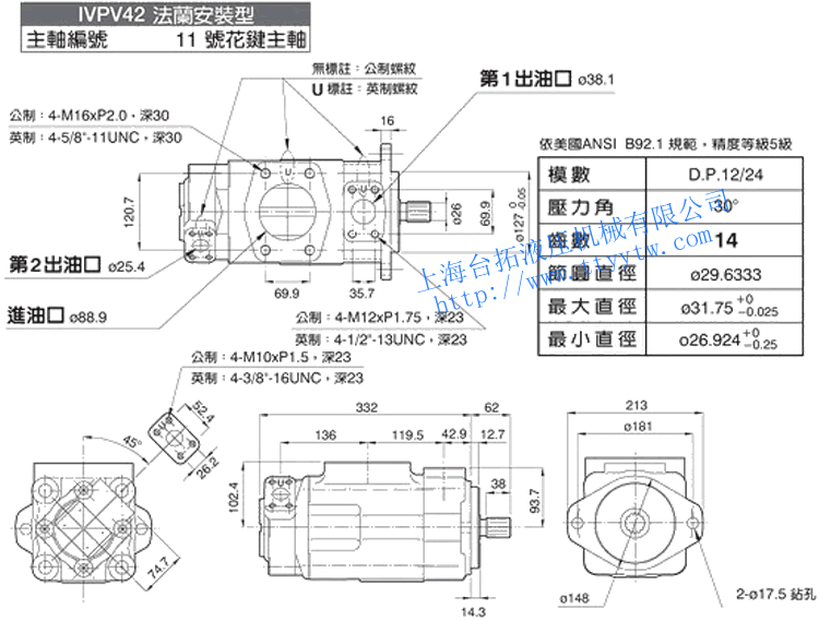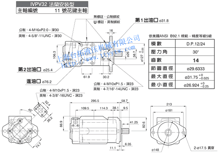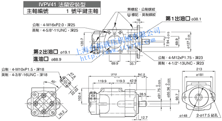 雙聯(lián)子母葉片定量泵IVPV32(11號花鍵主軸)尺寸圖下載 雙聯(lián)子母葉片定量泵IVPV41(1號平鍵主軸)尺寸圖下載